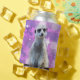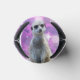 Pictured on a Pink Purple Bokeh Background is a pretty Meerkat.