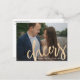This seasonal photo card design features a full bleed image with a brushed faux gold glitter lettered font overlay.