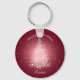 A shimmering Christmas tree with random stars shines against a lovely ruby red background. Add your name or any other message below to make a pretty seasonal keychain. Available in alternate colours with matching postage, stickers and photocards.