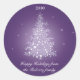 A shimmering Christmas tree with random stars shines against a lovely amethyst purple background. Add your customised message to make a pretty seasonal favour. Use as envelope seals, closing favour bags or sealing presents. Available in alternate colours with matching postage and photocards.