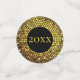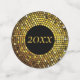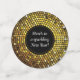 This New Year's Eve table confetti features a circular pattern of shimmering gold-tone lights against rich black, creating a circular frame for the year indication. Each size has an area for different messages. Makes a festive table decoration for an office holiday party, birthday party, New Year's Eve wedding, or holiday cocktail party. Available with matching products.