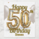 At its heart, a bold, shimmering gold “50” takes the spotlight, adorned with crystal-like accents that radiate sophistication and joy. Surrounding it are festive balloons and a playful scatter of confetti, perfectly capturing the jubilant spirit of this milestone. Below the dazzling “50,” the name and message are fully customisable, allowing you to tailor it for the guest of honour or someone dear to you.