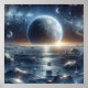 A mesmerising cosmic landscape featuring a radiant planet surrounded by glittering asteroids and twinkling stars. The celestial glow and deep-space hues create a sense of wonder and mystery, making it a captivating piece for astronomy and space lovers.