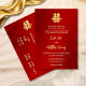 This version has a headline to announce the wedding by the parents of the bride and groom. This elegant Chinese wedding invitation features an artistic gold double happiness symbol on a floral ruby red shimmering background. Bride and groom names in an elegant handwritten script. Chinese wedding invitation or tea ceremony invitation.