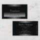 Make a lasting impression with this elegant and modern business card design featuring a black grey and white colour gradient with a shimmery dark decor frame. Matching an outstanding font with mirror shadow effect.