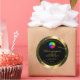 The design features a bright shimmering gold glitter frame with tiny glitzy stars on a plain black background.