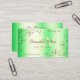 Make a lasting impression with this elegant and luxurious business card design featuring pretty gold ornate corner borders with cute hearts on a luminous shimmery green coloured background.