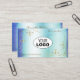 Shimmery Marble Blue Teal Gold Ornate Corners Logo Business Card