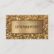 Faux sparkly gold sequin or confetti style glitter paired with black and white business card information.