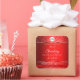 Make a lasting impression with this elegant product label design featuring shimmery soft glitter stars graphics and shining silver lines on a red shimmer effect background.