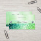 Make a lasting impression with this elegant and quality business card design featuring a luminous sparkling teal and green gradient glitter effect print with glamourous diamonds graphics and a shimmery pastel teal green pattern background.