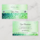 Make a lasting impression with this elegant and quality business card design featuring a luminous sparkling teal and green gradient glitter effect print with glamourous diamonds graphics and a shimmery pastel teal green pattern background.