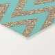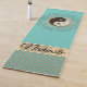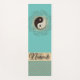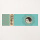 An inspiring mat featuring an elegant mosaic yin yang symbol surrounded by gold luminous flourish and small leafy twigs on a green teal background then on the bottom is a gold glittery chevron pattern with a shimmery gold ribbon where you can personalise it to make it uniquely your own. Enchanting elegant vibes.