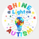Inspirational phrase of “SHINE a Light on AUTISM” with a colourful light bulb as a symbol of Autism to support and advocate Autism Awareness.