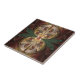 Ceramic tile with "Shine and Rise," by Susan Wallace. Copyright © 2010, Susan Wallace. A faux stained glass hourglass shape embellished with flowers and leaves in Christmas colours of red, green, gold and white.