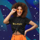 This tee features the word "shine bright" written with gold sequins that shimmer and sparkle against a black background.