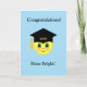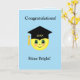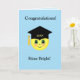 Shine bright Congratulations card with graduation hat and happy face on light blue background. Ideal for Graduations. Text can be personalised!