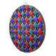 This awesome dart board design has an abstract pattern with rows of red, light blue and dark blue diamonds on it. Each row is separated by a row of black diamonds. Each of the black diamonds has a hole in the middle of it. The top left of every single diamond looks like it is glistening. Here is the fun bit, you can fill in that hole with a choice of over 200 colours to make a unique design. Here the holes have been filled with a piercing bright pink colour as an example. To select your colour and see the effect it has on the design simply click on the “customise it” button, go to the colours section and click on background then select whichever colour you would like to put into the design. You can try as many colours as you like until you find the one that works for you.