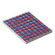 This awesome notepad has an abstract pattern with rows of red, light blue and dark blue diamonds on it. Each row is separated by a row of black diamonds. Each of the black diamonds has a hole in the middle of it. The top left of every single diamond looks like it is glistening. Here is the fun bit, you can fill in that hole with a choice of over 200 colours to make a unique design. Here the holes have been filled with a piercing bright pink colour as an example. To select your colour and see the effect it has on the design simply click on the “customise it” button, go to the colours section and click on background then select whichever colour you would like to put into the design. You can try as many colours as you like until you find the one that works for you.