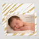 Share the news of your special arrival with this chic, gold-stripe birth announcement. The wording can be dragged to any location to fit into your photo.