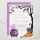 Add some shine to your baby shower invitations with real gold, silver, or rose gold foil! This classic and timeless metallic style is sure to add another level to your invites. A baby is brewing! This cute baby shower design features a hand-painted watercolor scene of a bubbling cauldron with purple smoke and a cute little cat wearing a witch's hat standing on an orange pumpkin detailed with real foil. Setting the scene, there is a gnarly black tree curved around the right-hand side of the card, with a real foil lantern hanging from one of the branches. In the top left-hand corner, there are four flying bats. The invite starts with "A baby is brewing..." in foil-pressed spooky typography. The event details are in clear sans-serif capitals, and the mum's name is written in foil-stamped chic script lettering. The cards reverse to the same purple colour as the smoke on the front, with hand-drawn white stars dotted all over the back. We have chosen to showcase a mum's name, but this invite can easily be customised to feature both parents' names for a joint shower. The purple theme is perfect for an October baby girl shower. If you want to edit fonts, placement, foil, or colours, simply scroll to "Click to customise further" and use the Zazzle design tool. You can easily choose from gold, silver, and rose gold foil from the tool above. A gender-neutral version of this design is available in our store. For any custom requests or questions, please reach out to us, just note that existing orders cannot be modified, so be sure to contact us first!