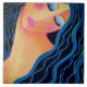 My lovely abstract digital painting of a woman with shiny black hair printed on ceramic tile