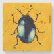 Shiny Blue Beetle Illustration Stone Coaster
