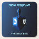 A modernistic, metallic, blue dreidel against a dark, night-like background. Two of the Hebrew letters found on a dreidel, nun and shin, glow brightly. Hebrew text reading "Chag Chanukkah Sameach" (Happy Hanukkah) also appears in glowing blue and white. (Greeting card with matching design also available) Add your own additional text.