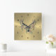Shiny Faux Gold& Colourful Deer Illustration Square Wall Clock