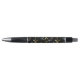 Stylish modern pen design for hairstylists with faux gold and silver scissors pattern on a black background. The background is fully customisable.