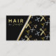 Stylish personalised business cards for hairstylists with faux gold and silver scissors on a black background. The text is fully customisable.