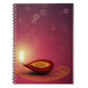 Shiny and bright Happy Diwali illustration: red diya (a cup-shaped indian oil lamp) with an indian ornamental mandala and a paisley on a beautiful bokeh background.