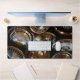 My original photograph of a ceiling with shiny hubcaps hanging from it, is featured on this nice desk mat. The desk mat is a nice thick material with non-slip backing for a sturdy and pretty mat, that will give a man cave or garage a fun look.