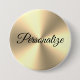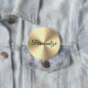 Shiny metallic gold large pinback button. Personalised pins for Birthday, Christmas, corporate office party, New Years Eve, wedding, event, celebration etc. Make your own name badge for friends, family, guests, employees, clients, coworkers, customers, bridesmaids, maid of honour, matron of honour, flower girls, mother of the bride etc. Available in small and extra large sizes. Elegant script typography template with golden shine.
