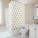 Chic, stylish modern Polka Dot or spot pattern in a trendy faux shiny Gold look colour on a white background for home shower curtains. This simple and elegant design will enhance any bathroom, beach house, holiday house, or home decor. Great gift for wedding, engagement, christmas or birthday or someone you love.