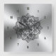 Shiny silver-grey metallic design stainless steel look black numerals featuring black ornate floral mandala. Metallic look is a digital illusion and not real metallic shine.