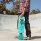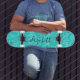 Personalised girly skateboard featuring your first name in a trendy script against a shiny mint green background,