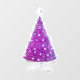 This window cling has a shiny dark pink and silver Christmas tree with stars on a white star shaped rug.