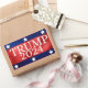 These Donald Trump 2024 presidential campaign stickers feature a shiny looking metallic design that will stand out. The background is a shiny looking red foil pattern with the name and election year, "Trump 2024" printed in the centre in a large white font. A patriotic band of white stars over a navy blue banner is printed above and below the text to represent the stars on the American flag.