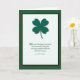 A sticking beautiful simple card with a green shamrock placed in a white background with a black and green border. This card includes an Irish blessing on the front and is suitable for any friend or family member. Personalise the recipients name and your name.
