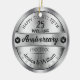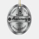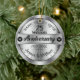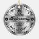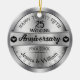 Elegant shiny silver tones happy 25th wedding anniversary text design with black accents. White diamond heart. Customisable year of wedding and names. It looks good on round ornament as well.