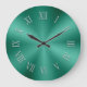 Shiny Teal Green Metallic Clock with Roman Numbers