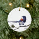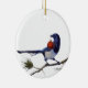 Magpies are famous for thieving and they are especially drawn to shiny things. Here is a bird that has taken a fancy to a shiny red Christmas ornament.