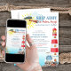 Cute nautical boys birthday invitation, titled "ship ahoy and anchors aweigh" which you can complete with your custom wording, such as our little boy is [any age] today. The design features a lighthouse with sailor seagull and starfish on the rocks; an anchor in the ocean and the sun wearing a captains hat looking through a telescope. Ship ahoy and anchors aweigh is lettered in decorative typography and the design has a general colour story of blue, red and white. Please browse my store for matching items or message me to create them for you.