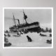 A classic photograph from the Alaskan documentary efforts of Frank G. Carpenter. This commemorative poster print features a View of passengers and dog teams meeting the S.S. Corwin in Nome, Alaska, taken in 1914.