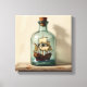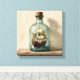 A canvas art with an illustration of a ship in an antique bottle. Frame it and it will be lovely for a man cave or office.
