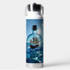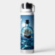 A ship in a bottle floating on the sea. A stunning ai illustration for those that love a nautical theme water bottle.