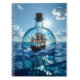 A ocean themed notebook. A ship in a bottle floating on the sea. A stunning ai illustration for those that love a nautical theme.