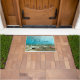 A ship in a bottle sunk in the shallows of the ocean, surrounded by seashells and lit by rays of sunlight.