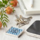 Bright blue and white horizontal stripe key ring with nautical ocean theme features a ship's wheel.